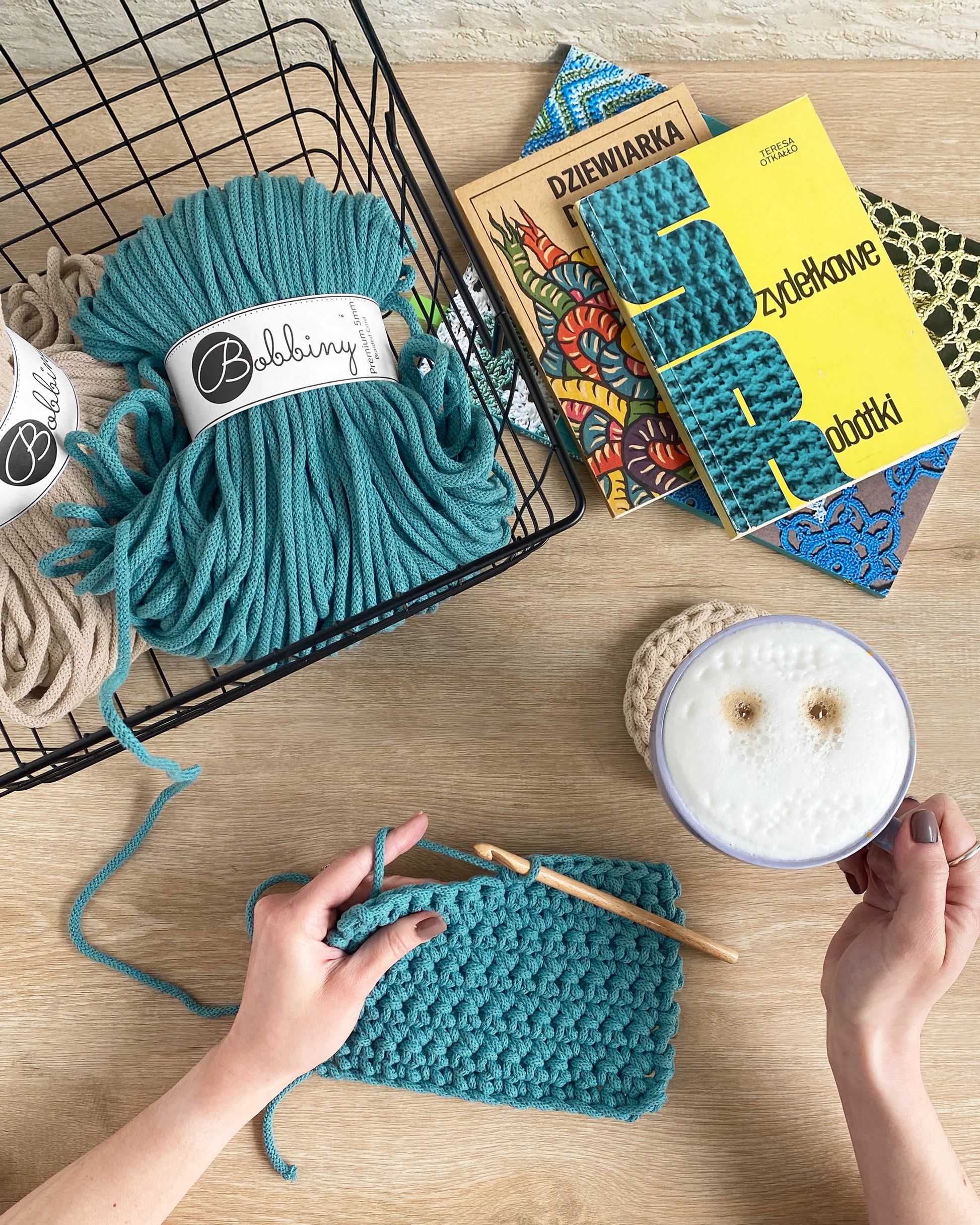 Fabriquée à partir de coton 100 % recyclé et certifié OEKO-TEX, elle est douce, résistante et offre une belle tenue. Sa tresse épaisse permet de créer des pièces qui se démarquent par leur relief et leur solidité.
